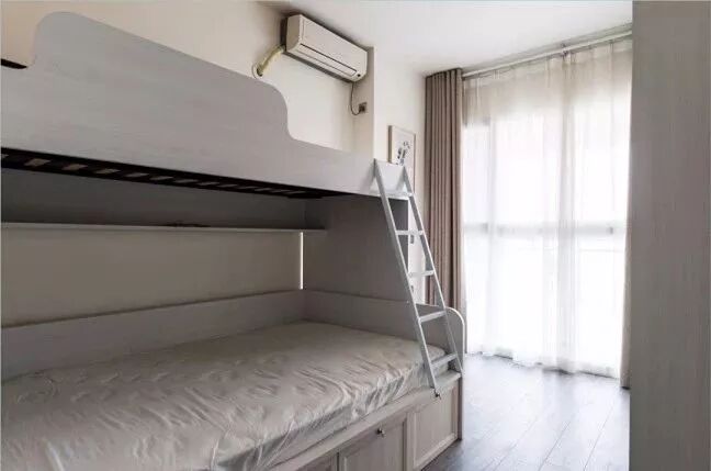 兒童房里是擺放了一張高低床,方便陪伴著孩子一起成長(zhǎng),父母來(lái)了也有個(gè)睡覺的地方。整個(gè)兒童房顯得格外的樸素,沒有太多花俏的設(shè)計(jì)。