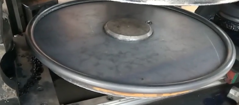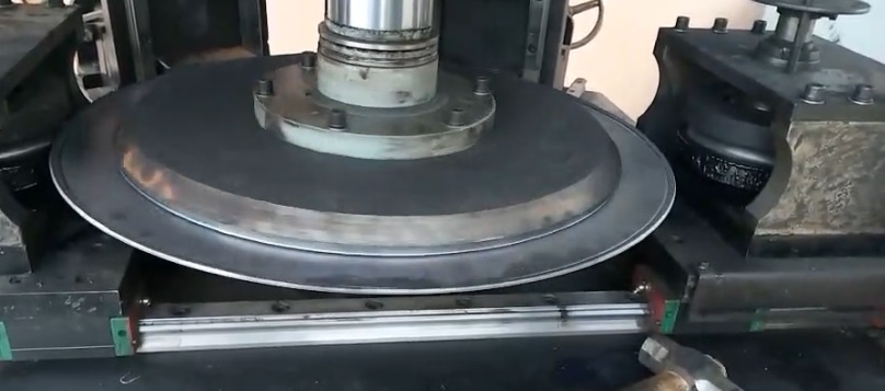 3、“初次彎邊”將圓盤(pán)需要卷成圓管的周長(zhǎng)一次彎夠,工件的邊緣先彎成約180o的圓弧。