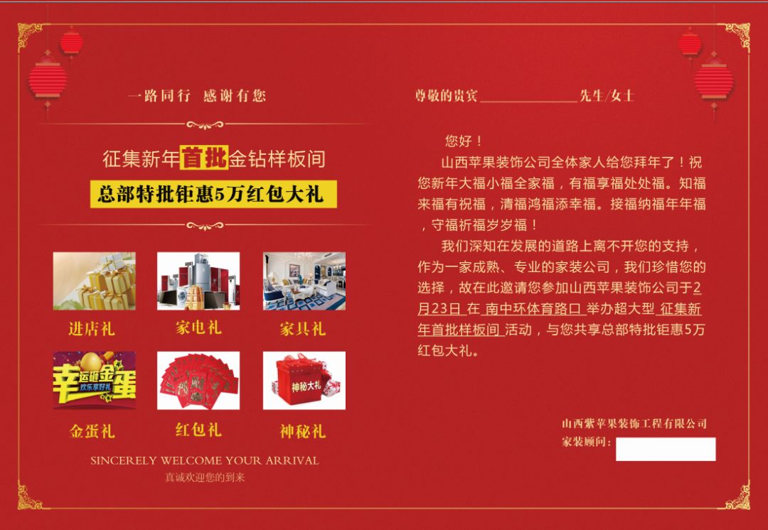新的一年已經(jīng)開(kāi)始了,新春到、福利到。紫蘋(píng)果裝飾2019新春首批金鉆樣板間暖心來(lái)襲,目前正在盛大征集中?。?!